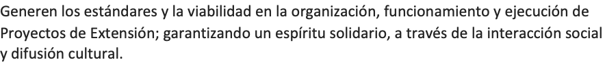 La Dirección de Extensión tiene la visión de generar los estándares y la viabilidad en la organización, funcionamiento y ejecución de Proyectos de Extensión; garantizando un espíritu solidario, a través de la interacción social y difusión cultural.